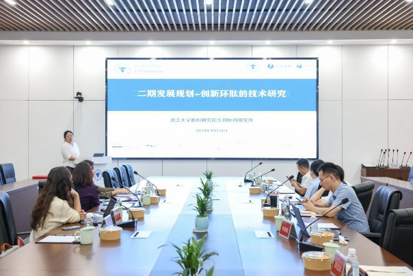 簽約儀式結(jié)束后,圣諾多肽團(tuán)隊(duì)參觀了浙江大學(xué)衢州研究院的展廳、分測(cè)測(cè)試中心、生物醫(yī)藥研究所相關(guān)創(chuàng)新實(shí)驗(yàn)室、中試基地等。后續(xù)浙江大學(xué)衢州研究院生物醫(yī)藥研究所相關(guān)科研團(tuán)隊(duì)詳細(xì)匯報(bào)了此次合作研發(fā)的項(xiàng)目目標(biāo)、技術(shù)方案和試驗(yàn)進(jìn)展等,并就存在的問(wèn)題和下一步工作計(jì)劃進(jìn)行了深入交流探討。